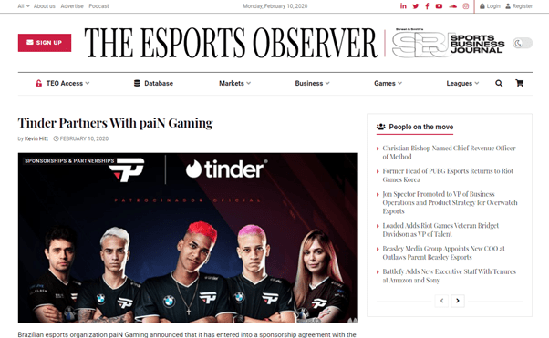The eSports Observer focuses more on the business side of eSports. They often write articles on partnerships, players and major tournaments.