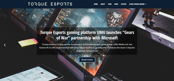 Torque eSports uses a simple font for their posts and general text. The top panel scrolls through the most recent articles and the lower panels transition into each other smoothly. The main color scheme of the site is white and navy blue.